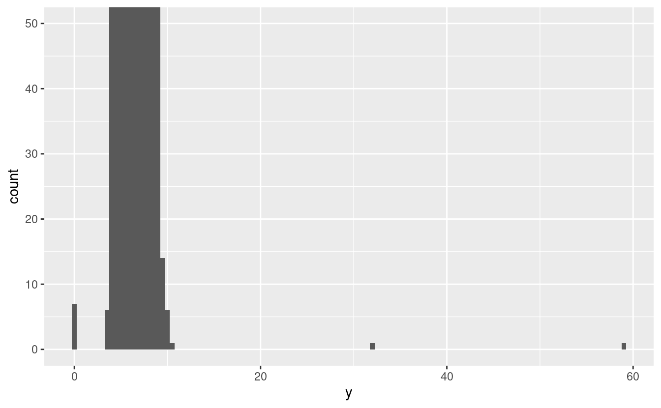 filter(y < 3 | y > 20) %>%