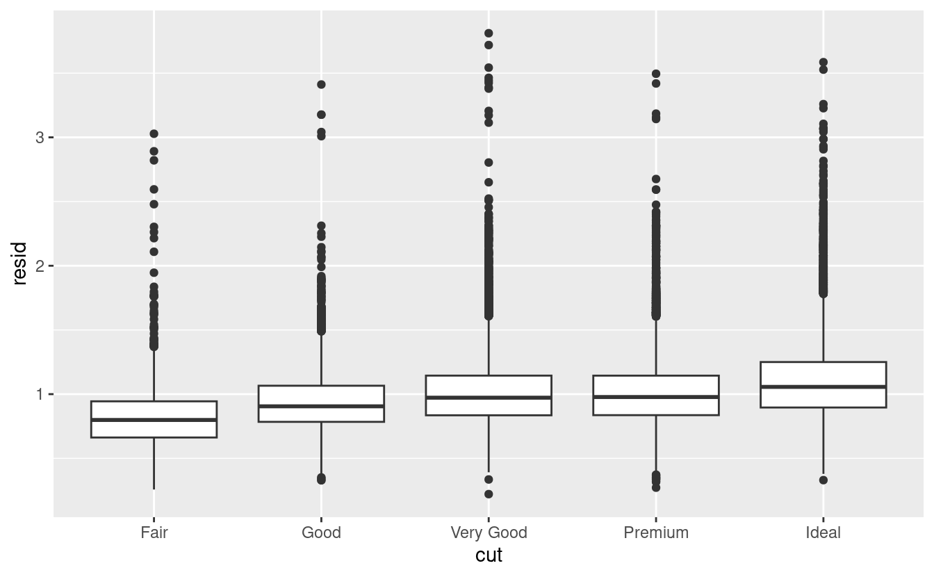 geom_boxplot(mapping = aes(x = cut, y = resid))