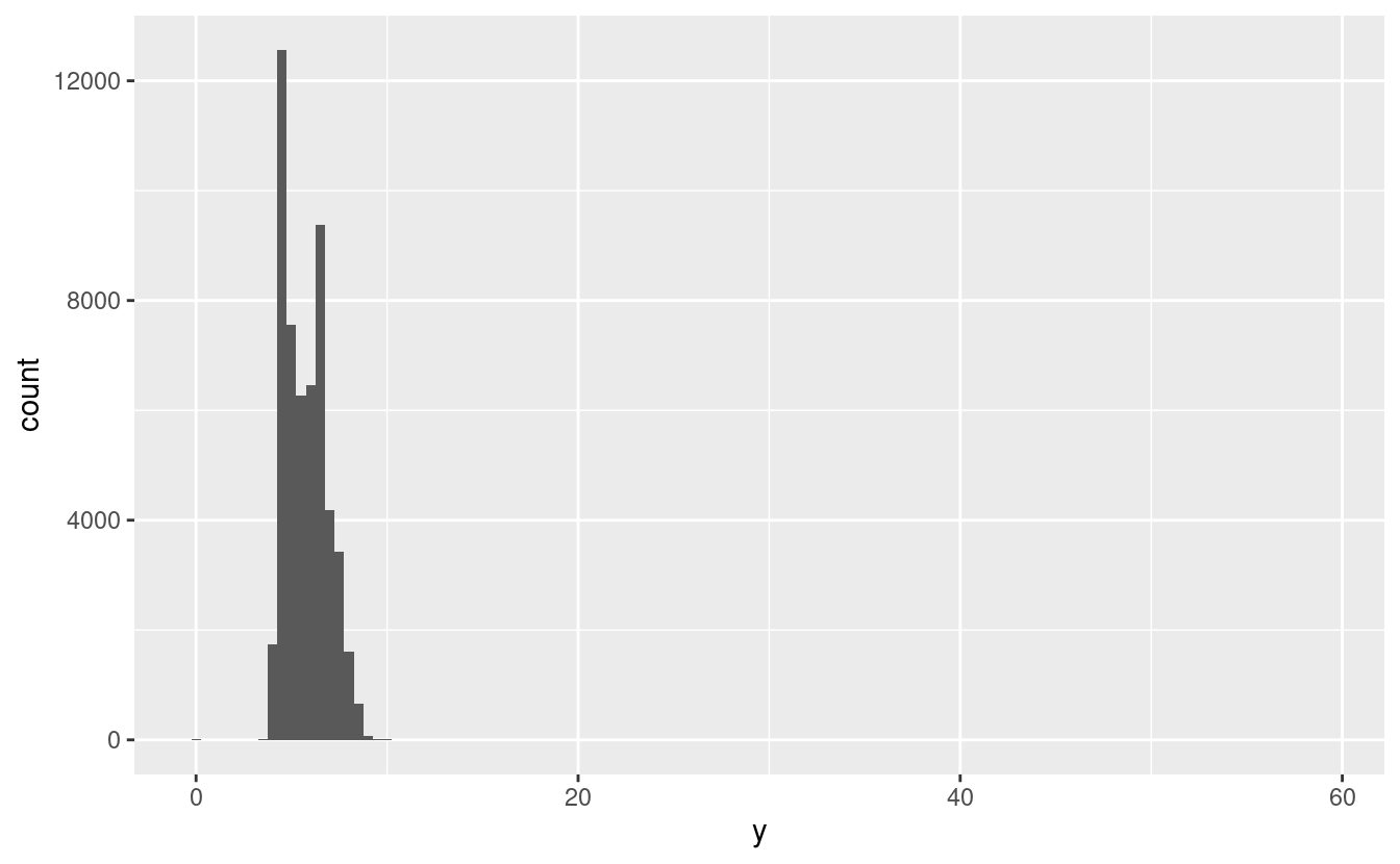 geom_histogram(mapping = aes(x = y), binwidth = 0.5) +