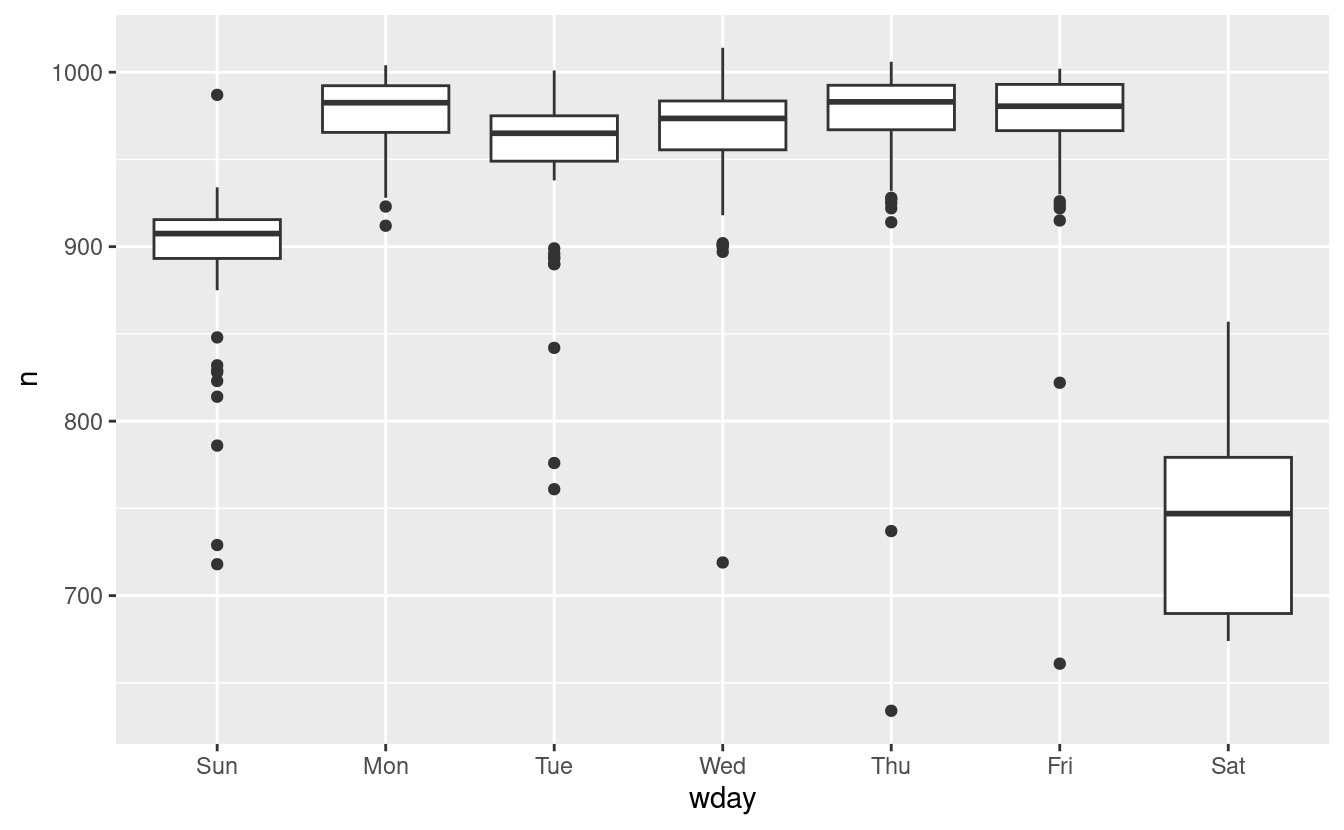 mod1 <- lm(n ~ wday, data = daily)