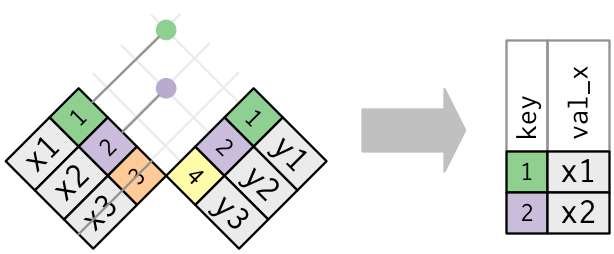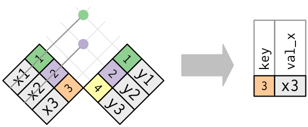 Invece puoi usare una semi-join, che collega le due tabelle come una mutating join, ma invece di aggiungere nuove colonne, mantiene solo le righe in x che hanno una corrispondenza in y: