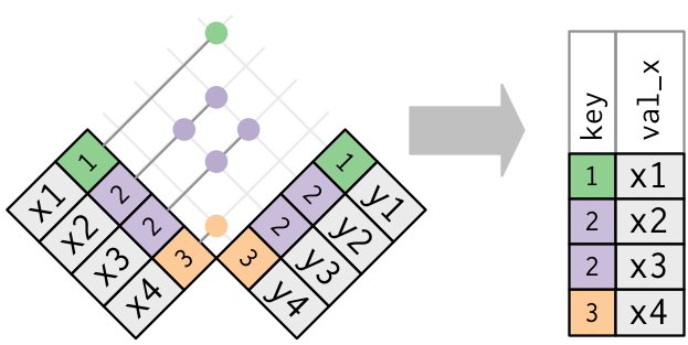 anti_join(). È comune che le chiavi non corrispondano a causa di errori nell’inserimento dei dati. Correggere questi errori è spesso un sacco di lavoro.Se avete delle chiavi mancanti, dovrete essere attenti all’uso l’uso delle unioni interne rispetto a quelle esterne, valutando attentamente se se volete eliminare le righe che non hanno una corrispondenza.
