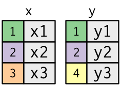 Filtering joins, che filtrano le osservazioni di un frame di dati in base se corrispondono o meno ad un’osservazione nell’altra tabella.