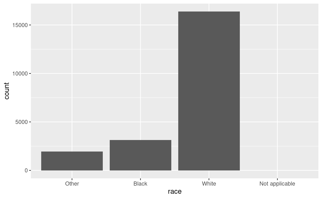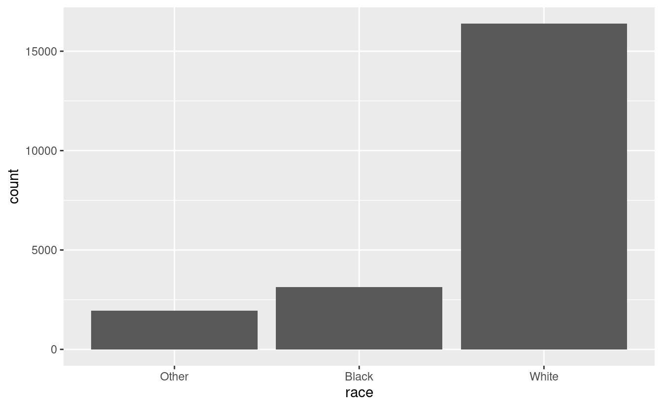 #> 2 Other 10637Il comportamento predefinito è quello di raggruppare progressivamente i gruppi più piccoli, assicurandosi che l’aggregato sia ancora il gruppo più piccolo. In questo caso non è molto utile: è vero che la maggioranza degli americani in questo sondaggio sono protestanti, ma probabilmente abbiamo esagerato.