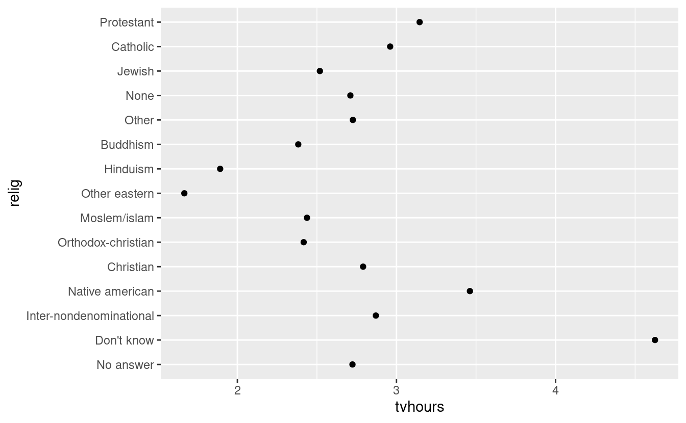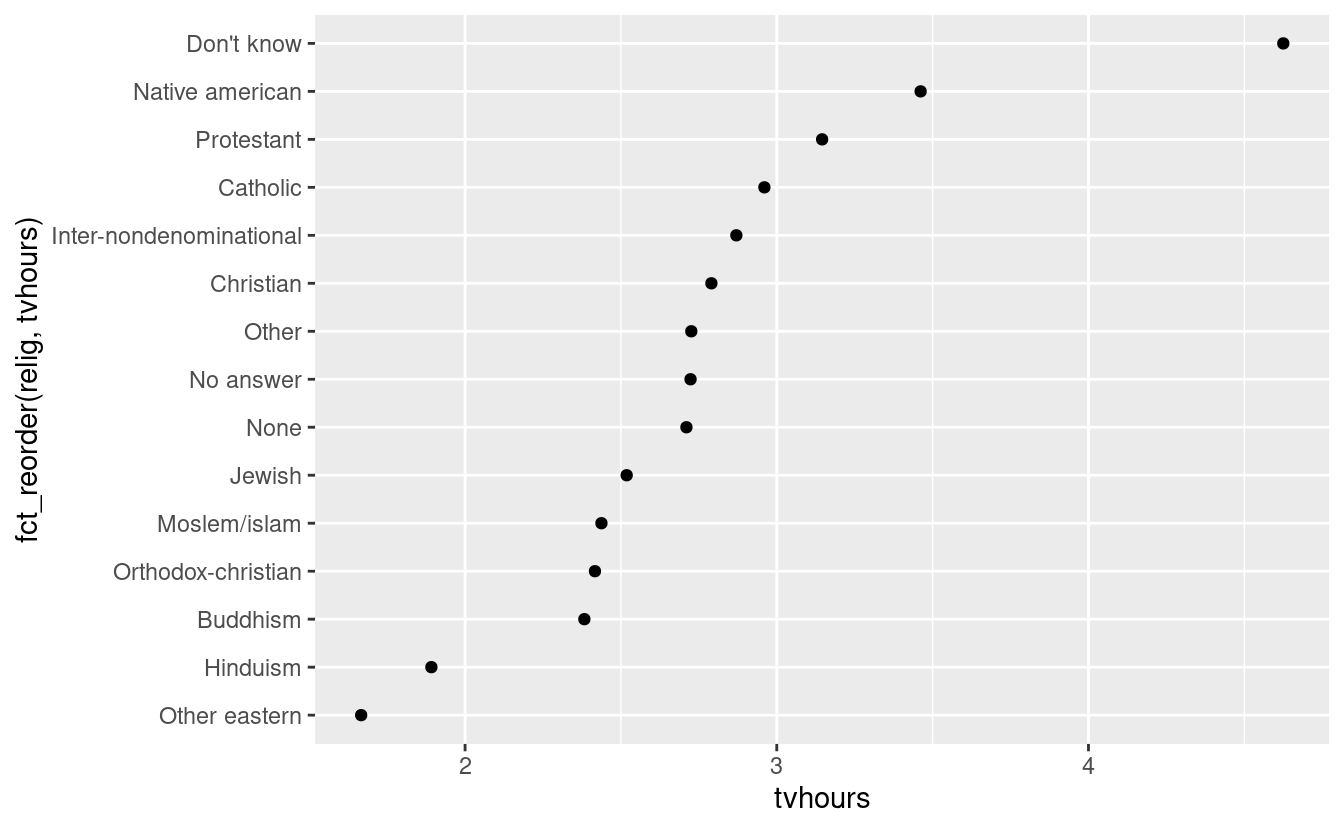 mutate(relig = fct_reorder(relig, tvhours)) %>%