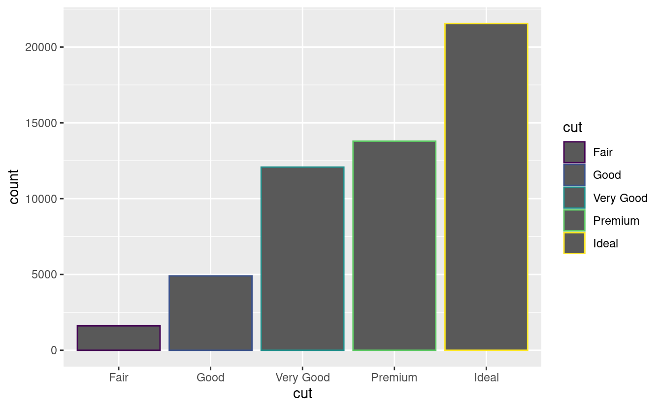 geom_bar(mapping = aes(x = cut, colour = cut))