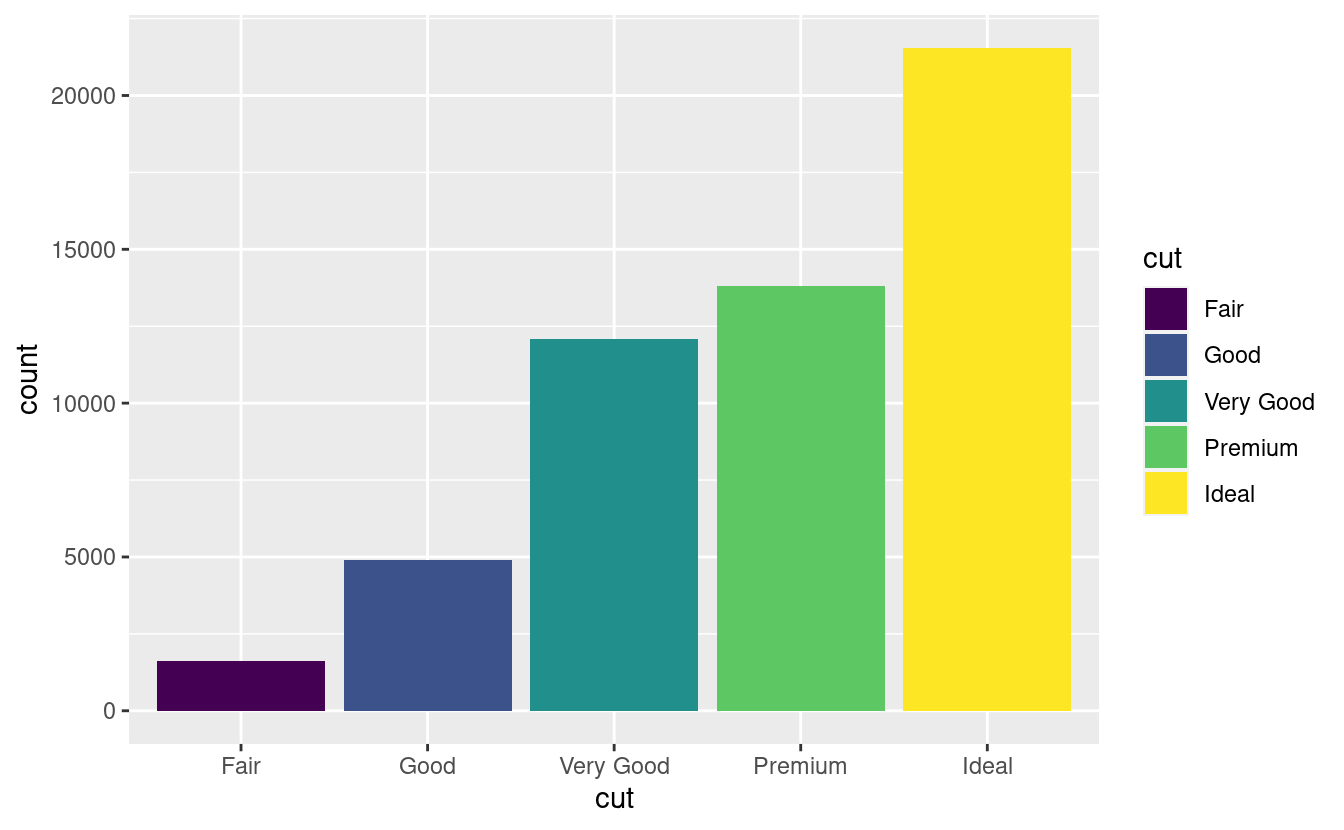 geom_bar(mapping = aes(x = cut, fill = cut))