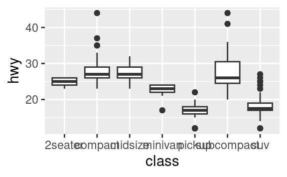 geom_boxplot()? Create una visualizzazione del datasetmpgche lo dimostri.