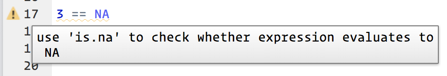 Quali altri errori comuni segnalerà la diagnostica di RStudio? Leggete https://support.rstudio.com/hc/en-us/articles/205753617-Code-Diagnostics per scoprirlo.